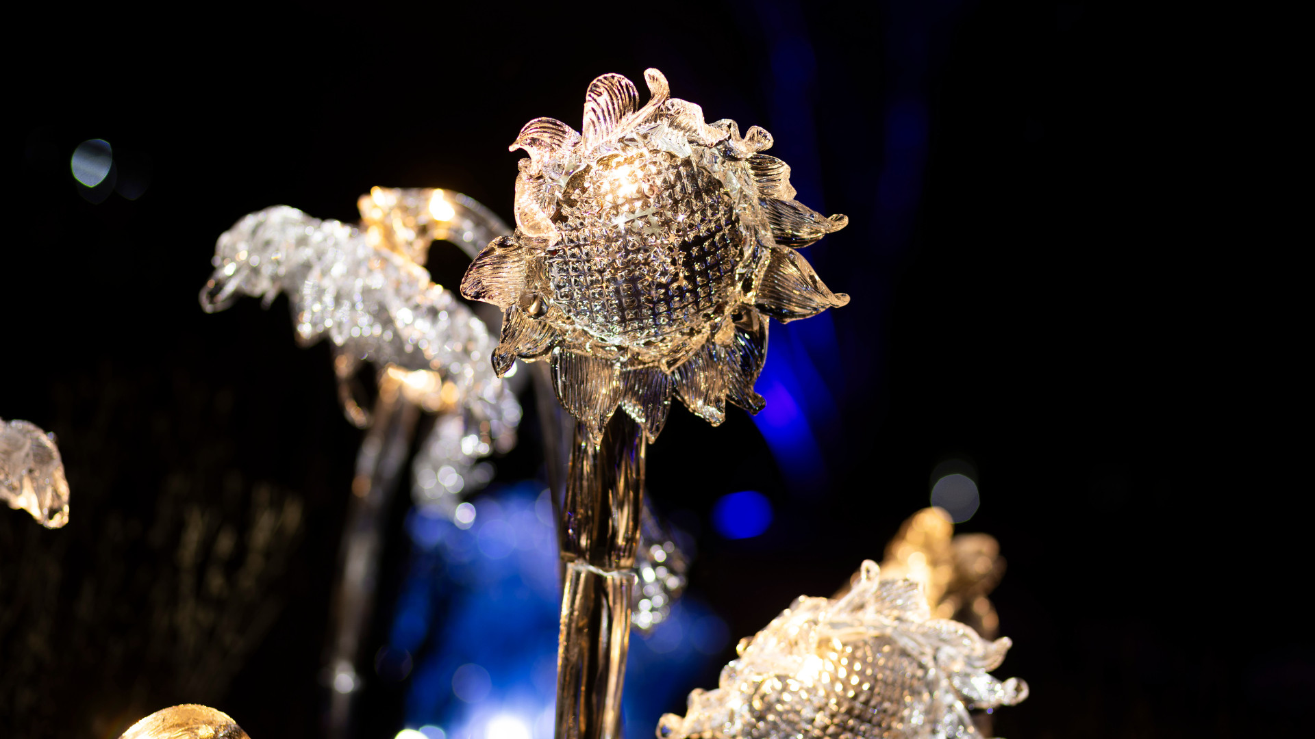 V kulisách zimní botanické zahrady zní originální hudební příběh, který umožňuje každému návštěvníkovi vstoupit do zvukového prostoru v jiný moment a vnímat interakci se skleněnými artefakty v kontextu různorodé hudby, zvuku i ticha. Dramaturgie, jejímž autorem je klarinetista a skladatel Jindřich Pavliš, je vystavěna na kontrastu, zvukové rozmanitosti a respektu k uměleckým dílům.