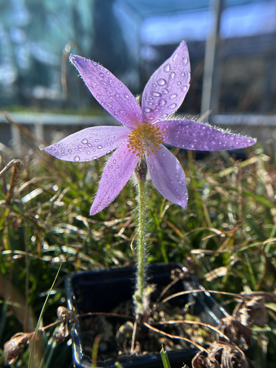 Radost nám letos udělalo také první kvetení koniklece velkokvětého (Pulsatilla grandis) v našem zázemí. Rostliny pocházejí z Podyjí, a právě s Národním parkem Podyjí připravujeme spolupráci na vybudování záložních populací v botanické zahradě i na posílení stávajících, kde dnes přežívají už jen poslední dvě až tři rostliny. Pulsatilla grandis má v České republice těžiště rozšíření v jižní a střední Moravě a v Čechách přirozeně neroste, což dává podyjským populacím mimořádný význam.