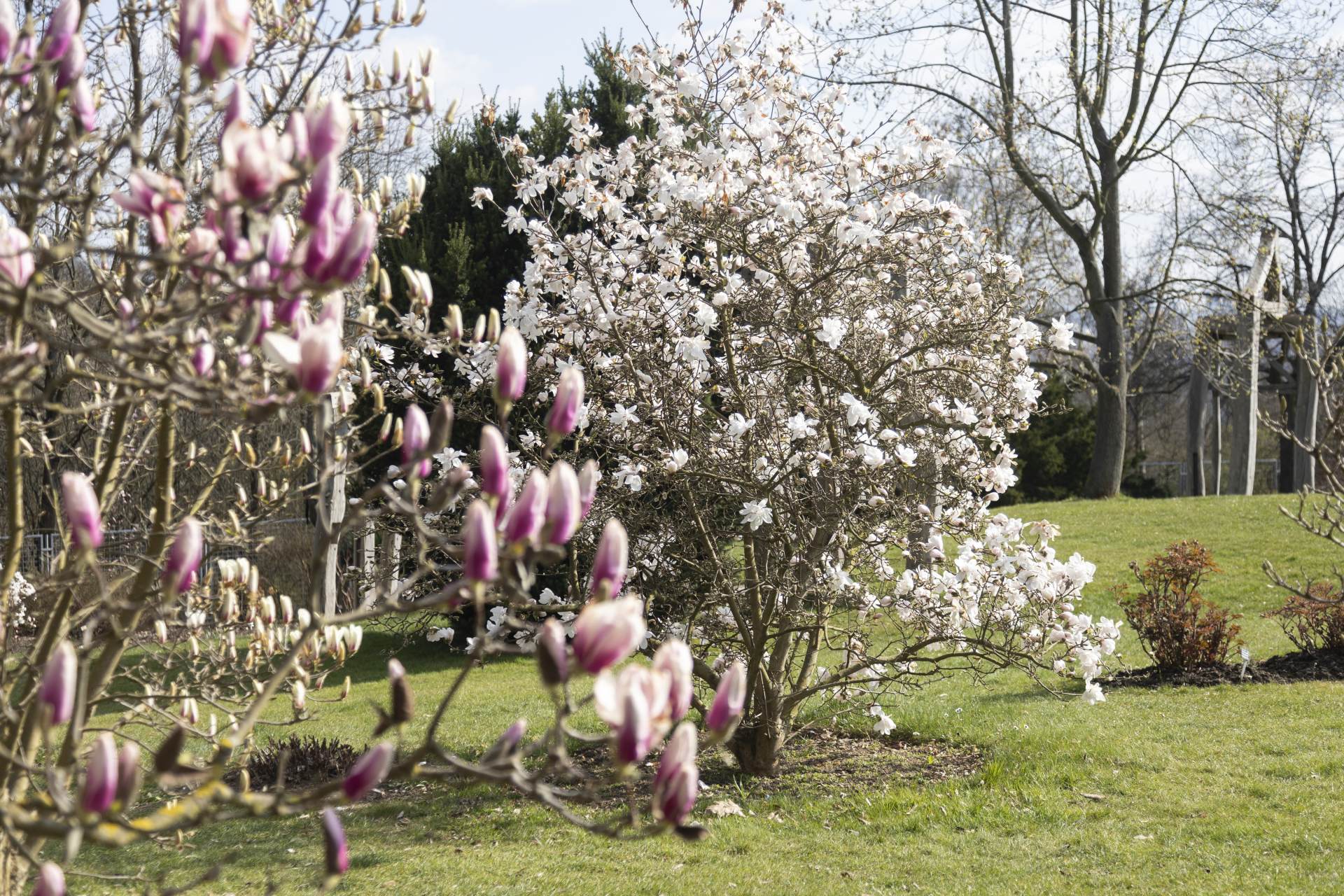 Magnolie jsou dřeviny, které jsou v době květu mimořádně okázalé, a při jejich výsadbě je proto třeba k této vlastnosti citlivě přistupovat.