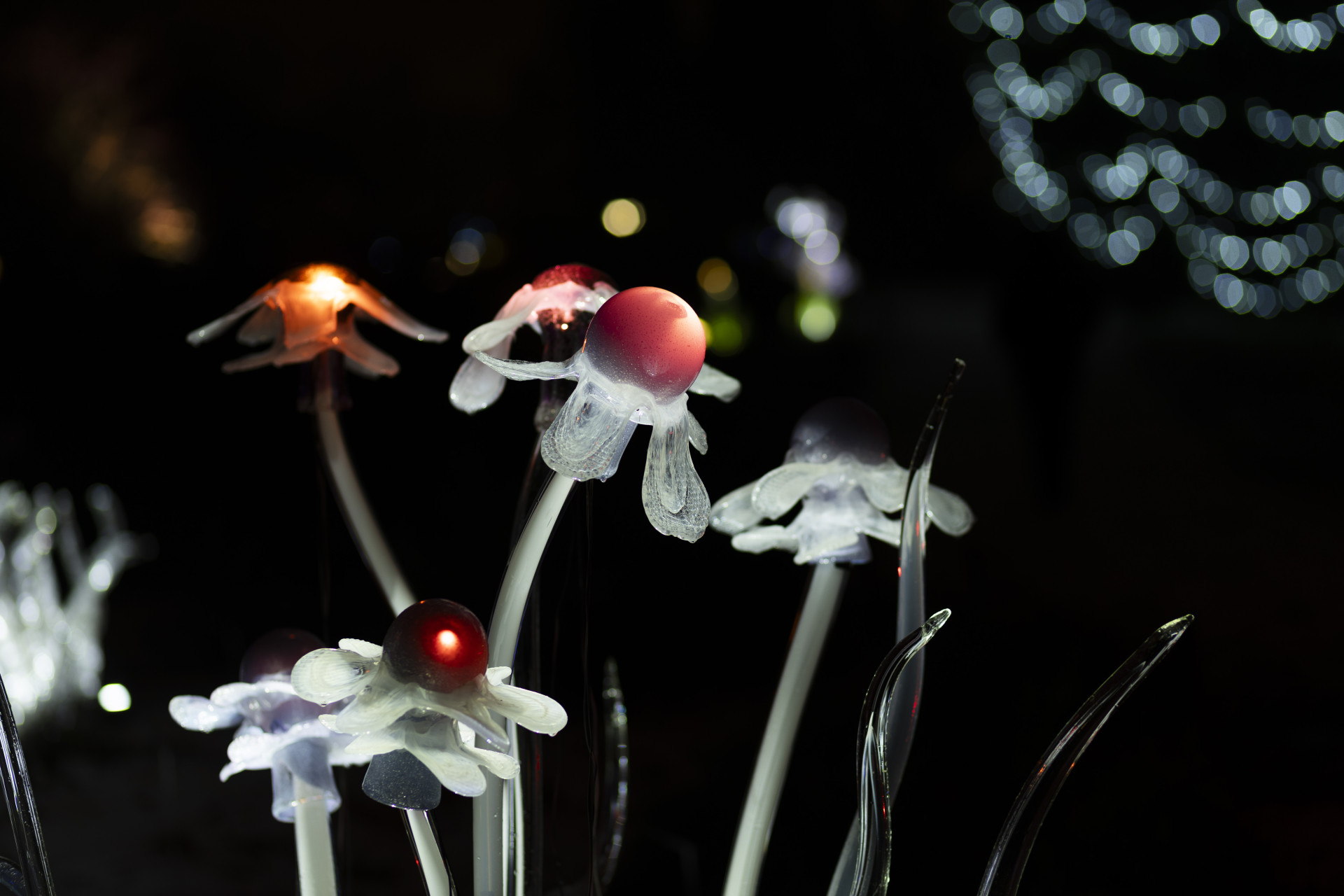 This winter, the Prague Botanical Garden will once again be transformed into a vibrant world of colour and light. Monumental glass flowers, trees, and fantastical forms, created by Jiří Pačinek and his team, will fill both the Outdoor Expositions and the Exhibition Hall, transforming them into a magical setting where nature meets art.