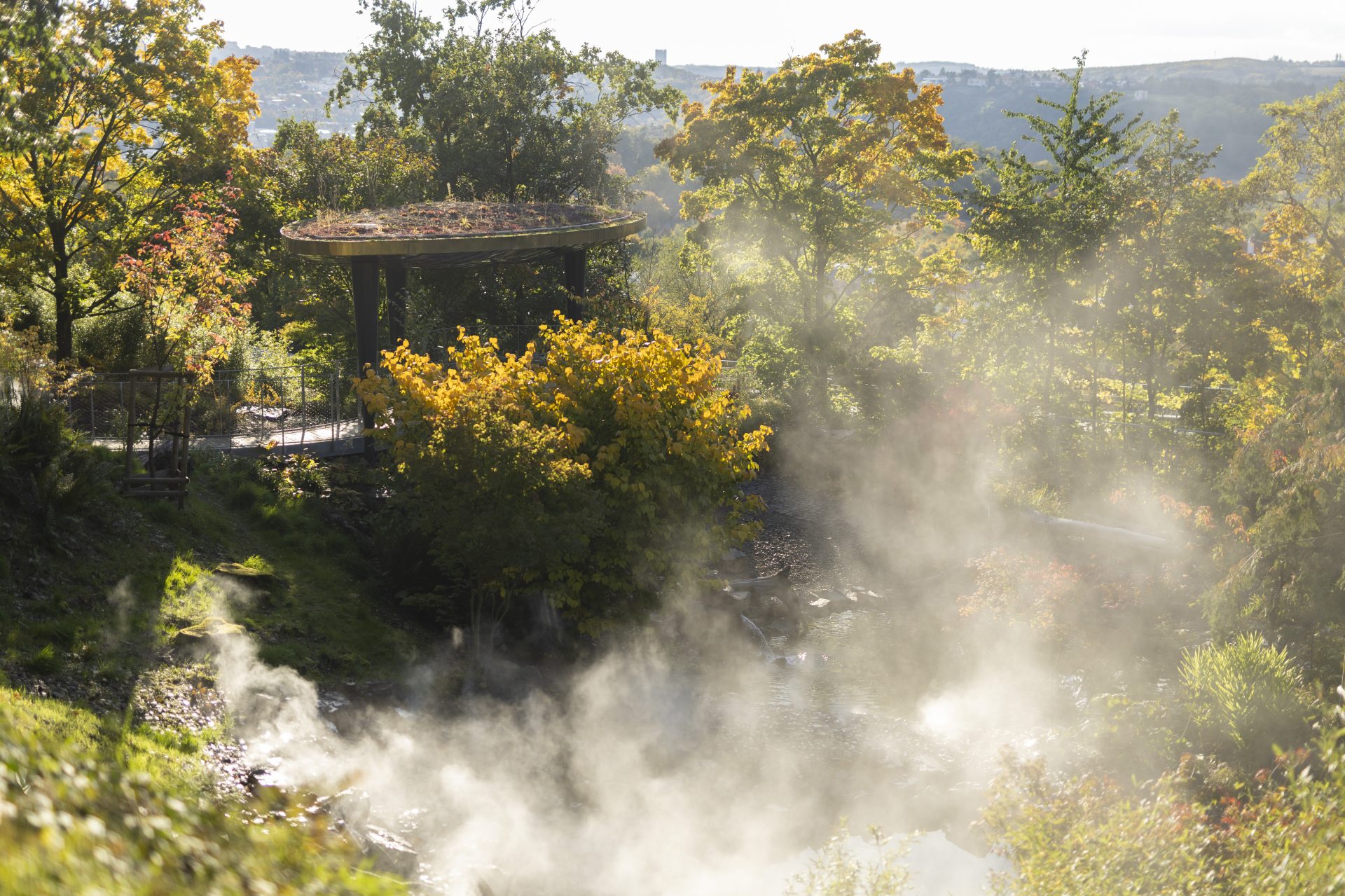 Symbolem expozice Japonské mlžné lesy je altánek moderního vzhledu, s odkazem na japonské tvarosloví. Vzniklo zde několik vyhlídkových plošin a odpočinkových zákoutí. Expozice je navržena tak, aby byla atraktivní po celý rok.