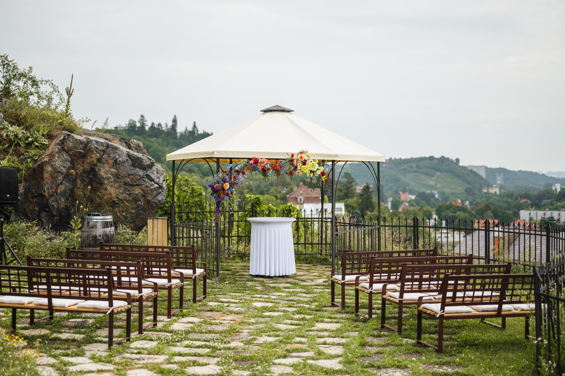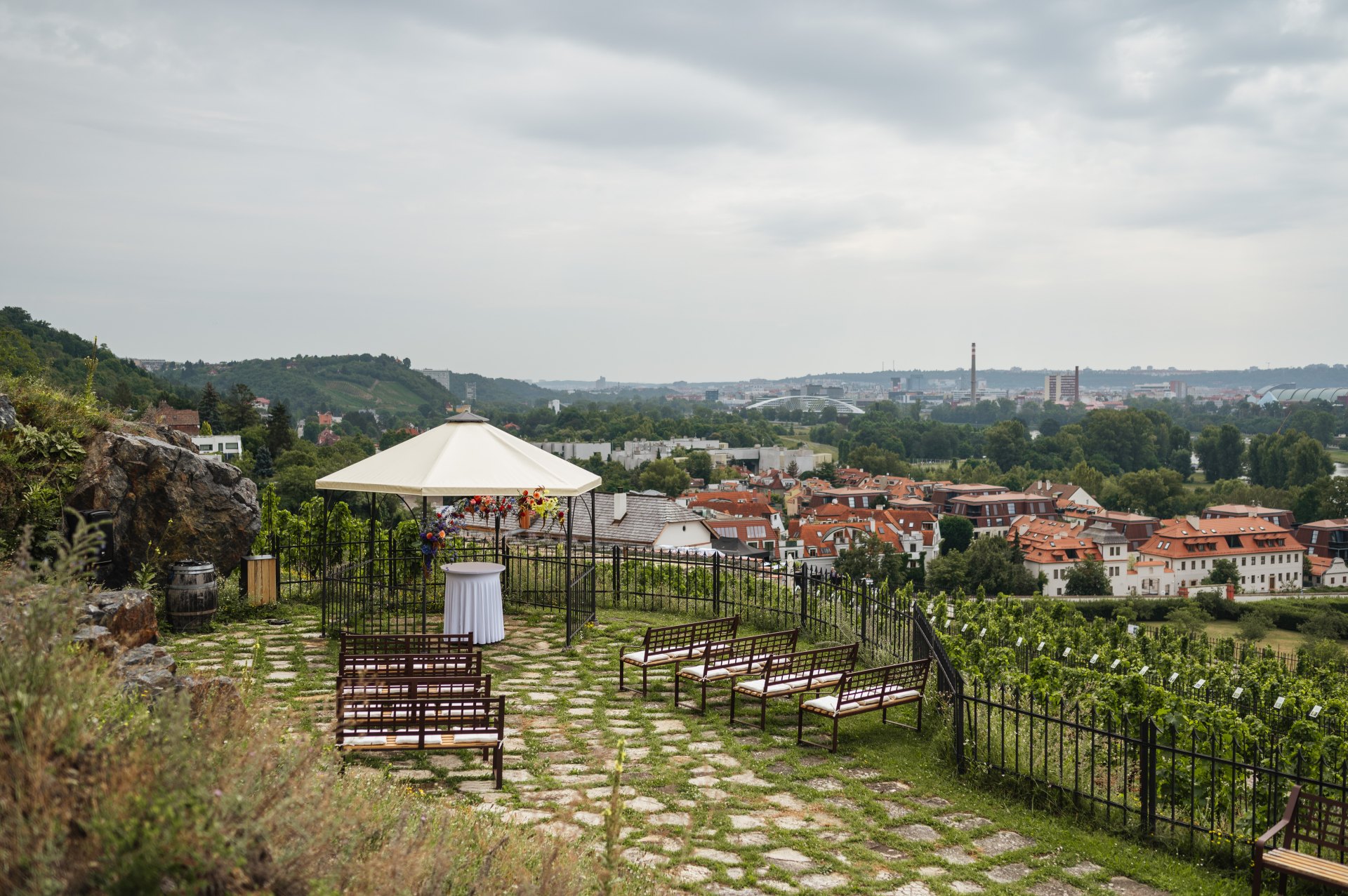 Prožijte Váš svatební obřad na terase pod kaplí sv. Kláry, rozkládající se ve svahu nad Trojským zámkem. Pod terasou se rozkládá romantická scenérie památkově chráněné vinice sv. Kláry, která se pyšní jedním z nejkrásnějších výhledů na panoráma hlavního města i Pražský hrad.